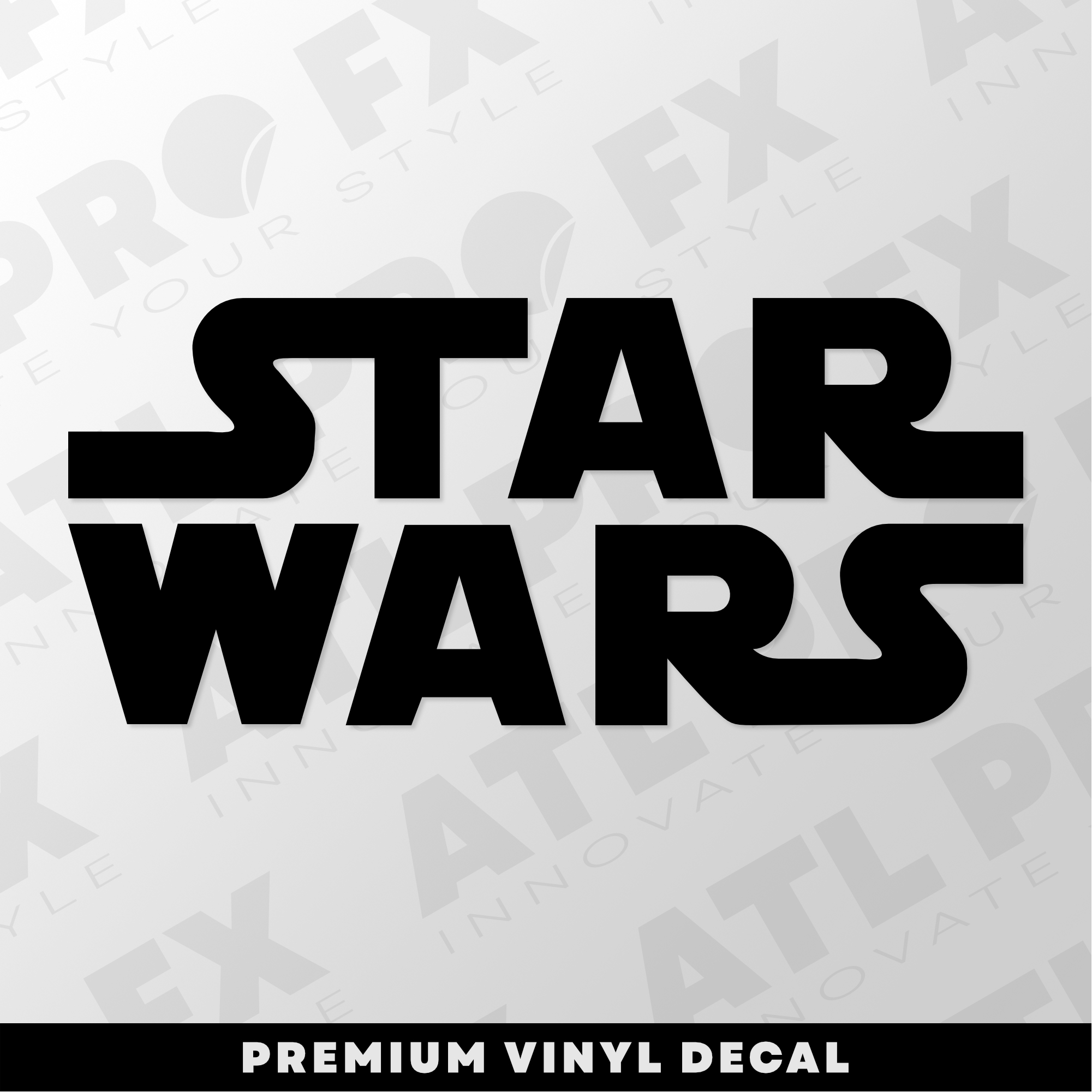 Black silhouette decal of the Star Wars logo in bold block lettering.