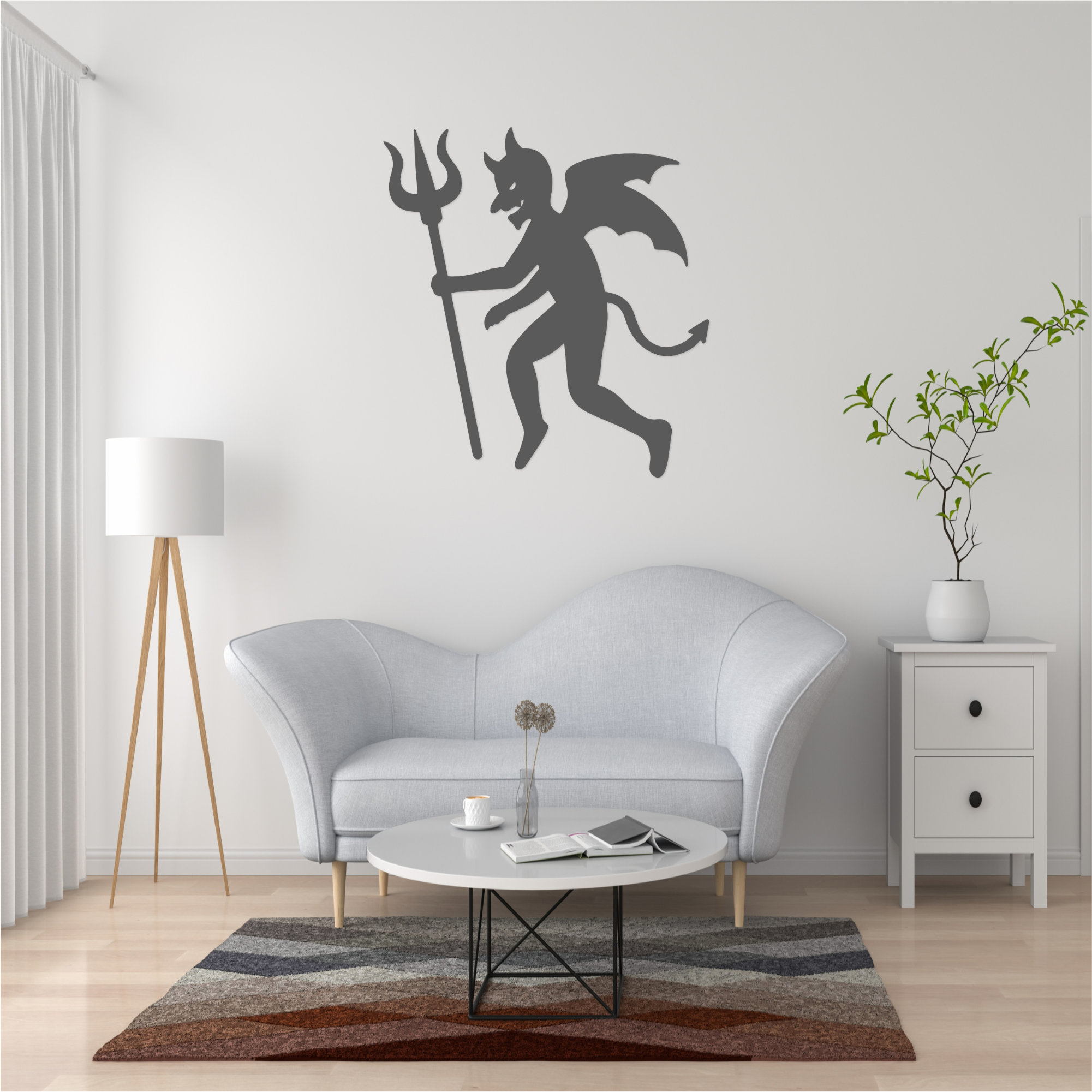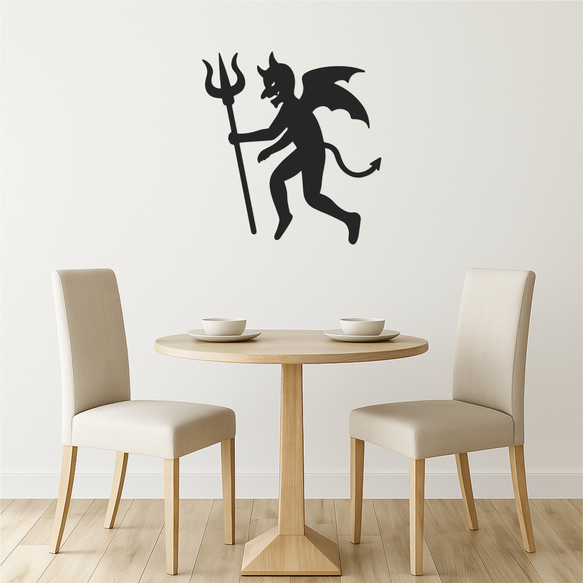 Winged Devil Decal | Trident-Wielding Demon Sticker